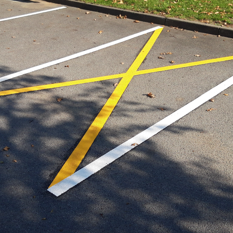 Vejstriber i termoplast til at brænde på asfalt og belægnings sten, til afmærkning af eks. parkeringsbåse.